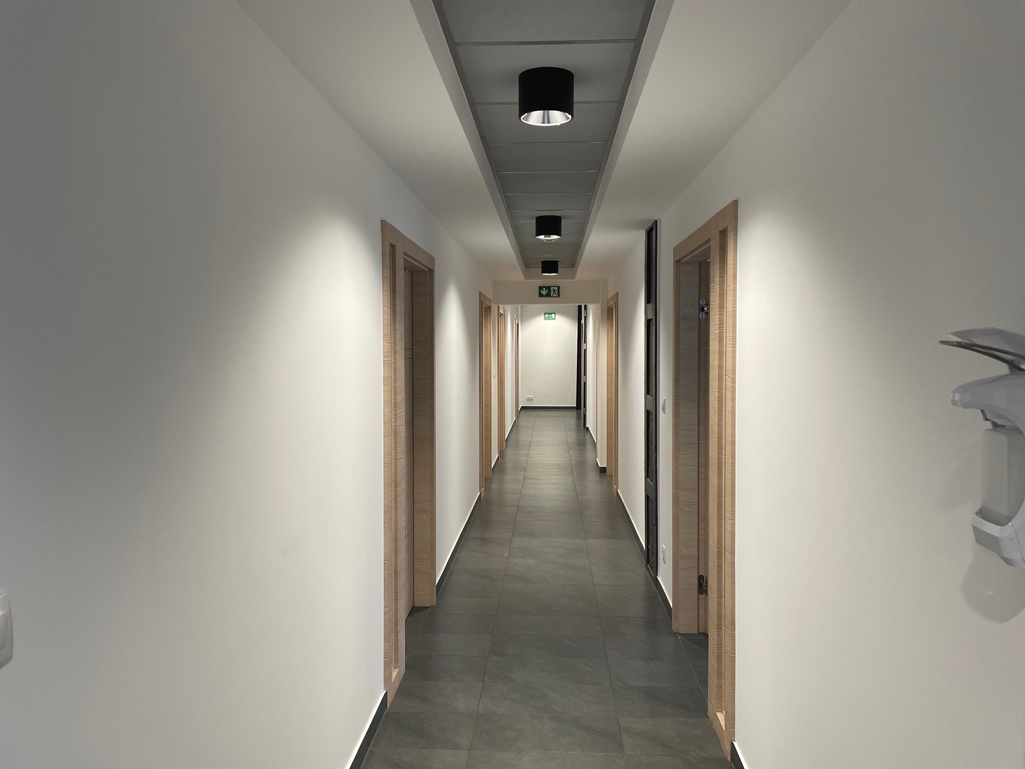 Lokal składa się 8 klimatyzowanych pomieszczeń. Część pokoi posiada wejście bezpośrednio od parkingu przy nieruchomości.